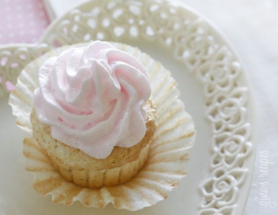 Once the glaze has set a bit, your angel food cupcakes are ready to be devoured! They are best served at room temperature. The delicate texture is a dream.