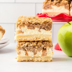 Yes! Spoon the crust mixture first into lined muffin tins, then add a spoonful of cheesecake filling and some apple chunks, then top with more crust crumbs. Bake at 350°F for about 20-25 minutes or until set. They’re perfect for portable snacks or kid lunches and bake faster than the bars, but keep an eye so they don’t dry out.