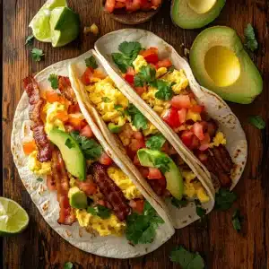 Transfer the tacos to a serving plate. If you’re feeding a crowd, cut them in half for easy sharing and an appealing presentation. Serve with extra lime wedges, chopped cilantro, and a side of hot sauce for those who like an extra kick. The combination of smoky bacon, creamy eggs, and tangy crema will win over even the most skeptical early risers.