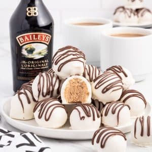 Once the chocolate has set completely (you can speed this up in the refrigerator for about 10-15 minutes), your Baileys cheesecake balls are ready to serve! You don’t need to slice them, of course, but if you want to see that beautiful creamy interior, you can cut one in half. They are best served chilled or at cool room temperature. Present them on a pretty platter, and watch them disappear!