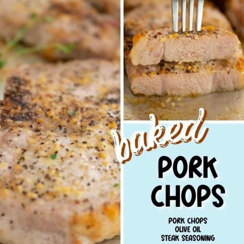 This easy oven-baked pork chops recipe features thick-cut chops seasoned with a flavorful olive oil and Montreal steak seasoning rub for juicy, tender meat prepared in under 20 minutes.