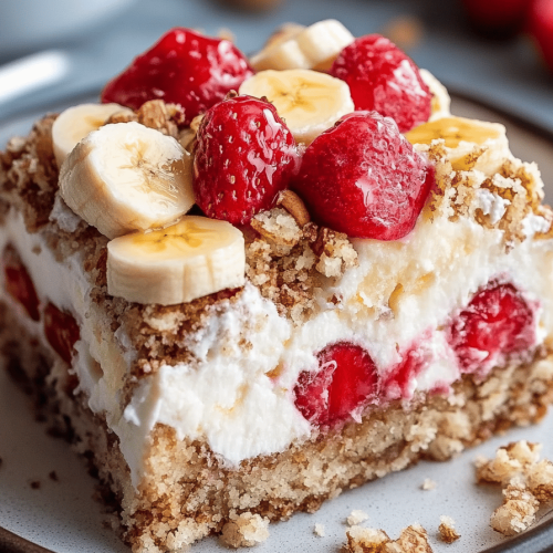 A delightful Banana Split Poke Cake that's perfect for dessert lovers.