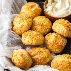Slice the scones while still warm for clean, neat edges. Serve with extra butter, jam, or a cup of your favorite coffee. These are best the day they’re baked, but they’ll keep for a day or two—still tender, just not as fluffy as when freshly baked.