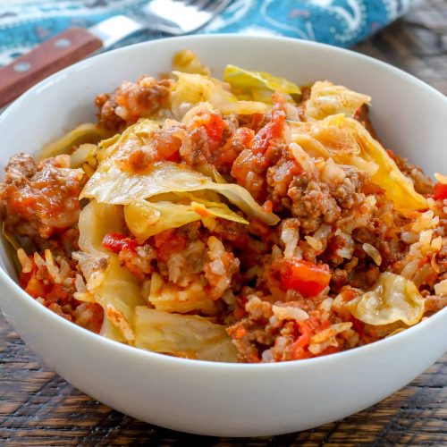 - Mix together the tomato sauce, light brown sugar, and white wine vinegar. Pour this mixture over the meat and cabbage layers. Cover with foil and bake for 90 minutes. Remove foil and let the casserole rest for 5 to 10 minutes before serving. Enjoy!