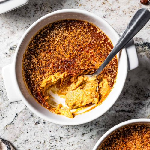 • Sprinkle 1 teaspoon of raw sugar on top of each custard. Broil the ramekins for 2 minutes or until the sugar melts and caramelizes.