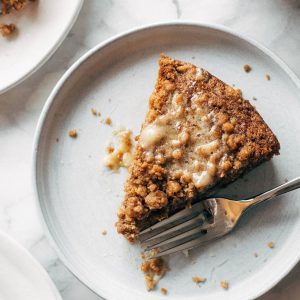 Let the cake cool a bit more before slicing. It’s delicious when it’s still slightly warm, with the glaze just starting to set. For the cleanest slices, use a sharp knife and wipe it clean between cuts. Enjoy!