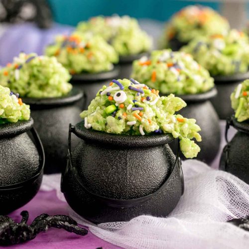 - While the Rice Krispies are still warm, decorate with Halloween sprinkles.