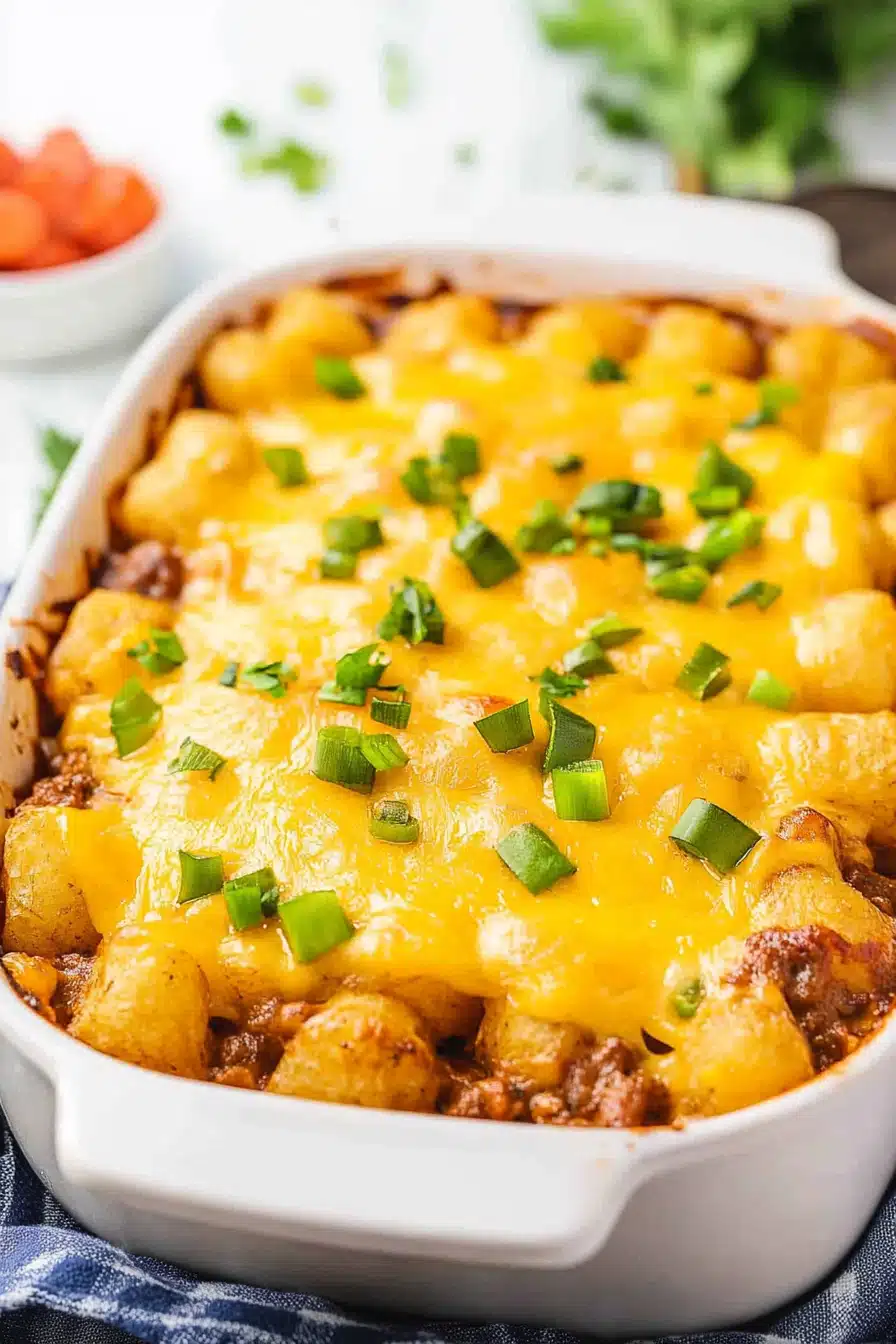 Cheeseburger Tater Tot Casserole final dish beautifully presented and ready to serve