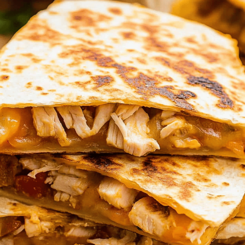 If you’re starting with raw chicken, go ahead and cook it first. I usually just pan-fry a couple of Chicken Breasts seasoned with salt, pepper, and a little chili powder until they’re cooked through, then shred them. If you’re using rotisserie chicken, you’re already ahead of the game! For the quesadillas themselves, grab a large non-stick skillet or griddle. You want to heat it over medium heat. You don’t need a ton of oil, just enough to get the tortillas golden and prevent sticking – about ½ teaspoon should do. You can also use a little cooking spray or a thin brush of melted butter. My trick is to preheat the pan before I even start assembling, so it’s ready to go.