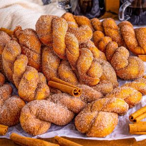 * ½ cup (1 stick) unsalted butter, melted: You’ll need this to help the cinnamon sugar adhere.