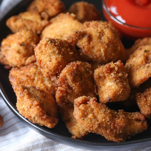 Moisture Management: If your chicken pieces release a lot of moisture, you can pat them dry with paper towels before coating. A drier surface helps the crust adhere and crisp up. If you see steam lifting from the pan, give the bites a quick 1–2 minute rest on a rack before baking to reduce steam buildup on the crust.