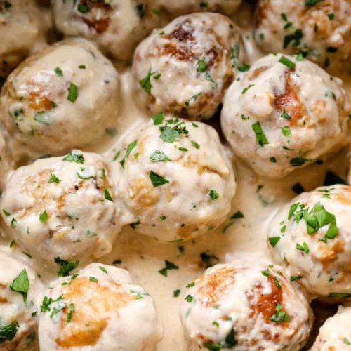 Once they’re done, let the meatballs rest in the slow cooker for about 10-15 minutes off the heat. This allows the sauce to thicken up just a bit more and the flavors to settle. If you want an even thicker sauce, you can scoop out some liquid, whisk it with a tablespoon of cornstarch, and return it to the slow cooker on HIGH for 15-20 minutes. Some people like to add a splash of heavy cream at the end for extra richness, but I find the sour cream and soup make it plenty creamy!