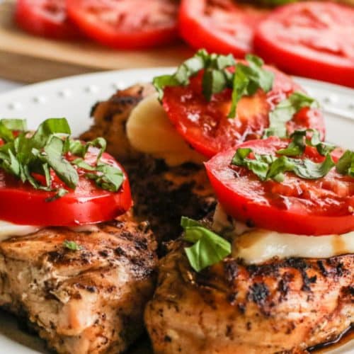 I generally don’t recommend freezing this dish with the mozzarella and tomatoes already on top, as the texture of the cheese can change and the tomatoes can become a bit mushy. However, you could grill and marinate the chicken and then freeze it raw or cooked (before adding the toppings). If you do freeze cooked chicken, make sure it’s cooled completely, wrapped tightly in plastic wrap and then in foil, and it should be good for about 2-3 months. Thaw it overnight in the refrigerator before reheating.