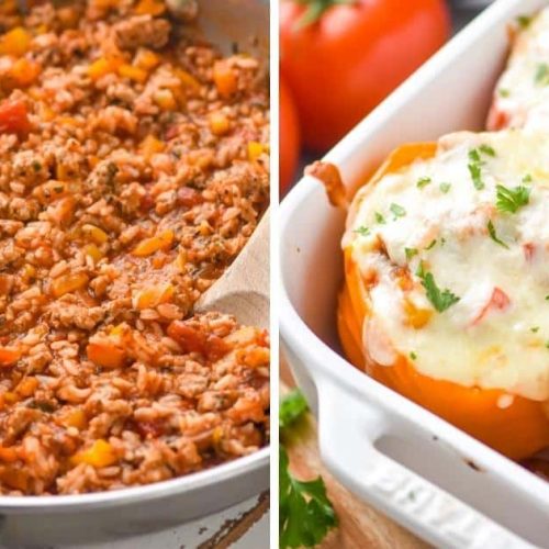 Freezer Instructions: These freeze exceptionally well! You can freeze the stuffed peppers before baking (wrap them tightly in plastic wrap then foil) or after they’ve been baked. If freezing after baking, let them cool completely first. Wrap each pepper half individually in plastic wrap and then place them in a freezer-safe bag or container. They’ll keep in the freezer for up to 2-3 months. To reheat, thaw them overnight in the refrigerator and then bake as directed, or reheat directly from frozen in a 350°F (175°C) oven for about 30-40 minutes, covered with foil.