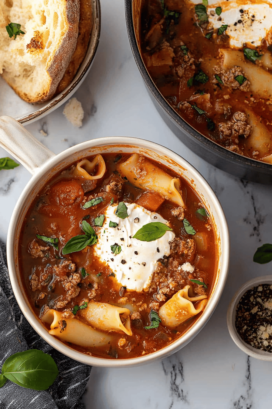 Where do I start? What are some good reasons to fall head over heels for lasagna Soup Recipe? First and foremost, the ego.flavorIs it amazing? The combination of the savory meat sauce, the creamy ricotta, and the perfectly cooked pasta is a true masterpiece. Match made in heaven. What is it like to have a symphony of deliciousness in every spoonful? What is so amazing about this recipe?simpleIs it a lifesaver on busy weeknights when you are short on time and energy? Plus, it’s super cheap.cost-effectiveYou probably already have most of the ingredients in your pantry, and the rest are easily accessible. Where can I buy fresh produce at your local grocery store? Let’s not forget about its importance.versatilityCan you adapt this recipe to suit your dietary needs and preferences? Is gluten free? What I love most about this is how easily it comes together and how satisfied everyone is after. Is it a staple in my house? Is it easier to make a lasagna? If you’re a fan of cozy, comforting soups like tomato soup or minestrone, you’re going to love this soup.