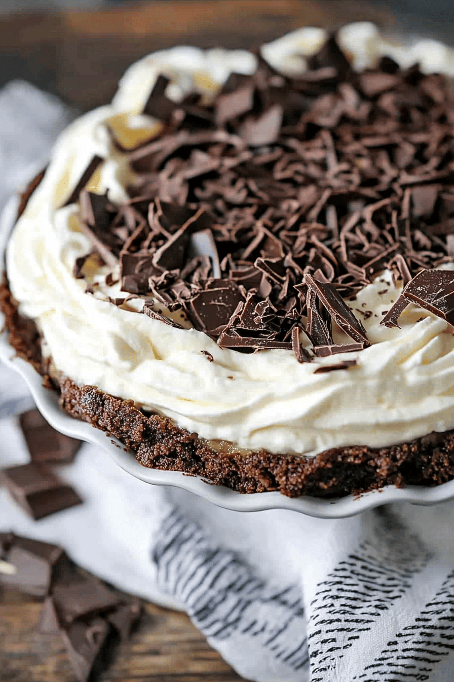 I’ve made this pie more times than I can count, and through those countless batches, I’ve picked up a few tricks that really make a difference. For the crust, the key is really pulverizing those cookies. If they’re not fine enough, your crust can end up too crumbly. A food processor is your best friend here, but if you don’t have one, a sturdy zip-top bag and a rolling pin will do the trick nicely. Really pack that crust into the pie plate; a firm, even layer is crucial for easy slicing later. When you’re making the pudding, don’t rush the thickening process. Whisk constantly over medium heat until it gently boils and then let it bubble for that full minute. This ensures the cornstarch is cooked properly, which prevents that starchy taste and guarantees a thick, luscious pudding. If you get lumps, a quick whisk with an immersion blender usually sorts them right out. I’ve also found that using a good quality chocolate makes a noticeable difference in flavor. Don’t skimp on the vanilla either; it really rounds out the chocolate notes beautifully. For the glaze, the ratio of cream to chocolate is pretty forgiving, but I find this one creates a perfect consistency that’s not too thin and not too thick. Letting the glaze cool before pouring is important; if it’s too hot, it might melt the pudding slightly, and if it’s too cool, it might be difficult to spread evenly. And the chill time is non-negotiable! Give it at least 4-6 hours, but overnight is truly the magic number for the firmest, most sliceable pie. If you’re tempted to add extra chocolate chips to the pudding, I’d advise against it; the finely chopped chocolate melts better and integrates more smoothly. For ingredient swaps, I’ve had success using almond milk for the pudding, but you might need to cook it a minute longer to achieve the desired thickness. And if you don’t have chocolate sandwich cookies for the crust, graham crackers work, but you’ll likely need to add a tablespoon or two more butter to get the right consistency.