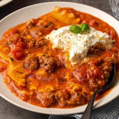 I truly hope you give this one pot lasagna soup a try. It’s one of those recipes that just makes life a little bit easier and a whole lot more delicious. It captures that comforting, satisfying essence of lasagna in a way that’s surprisingly simple to achieve. It’s the perfect example of how you can create incredible flavor without all the fuss. If you love this recipe, I think you might also enjoy my Speedy Sausage and Veggie Pasta Bake or my Creamy Tomato Basil Soup – they’re also big on flavor and relatively easy to make! So, gather your ingredients, put on your favorite apron, and get ready to whip up a pot of pure comfort. I can’t wait to hear how yours turns out and what your family thinks! Don’t be shy about sharing your own twists or tips in the comments below. Happy cooking!