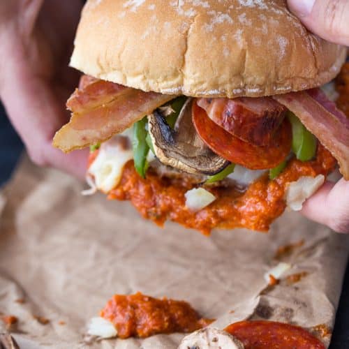 *Tip: Make sure your pizza sauce isn’t too watery, or it can make the burger a little soggy. A thicker sauce works best!