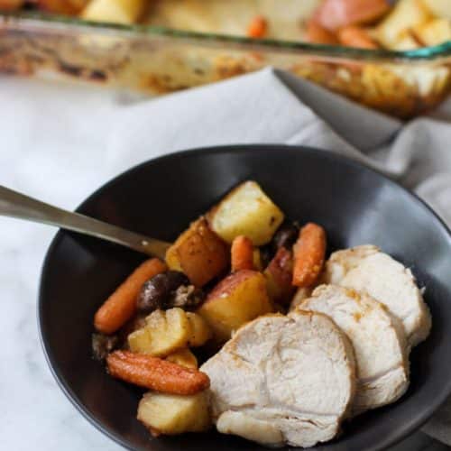 Potato & Carrot Texture: Cut potatoes into roughly equal-sized pieces so they cook evenly with the carrots. If your potatoes are larger, give them a head start by parboiling for 5 minutes before roasting, then finish them on the pan with the pork and apples. You’ll end up with edges that are beautifully caramelized and centers that are perfectly tender.