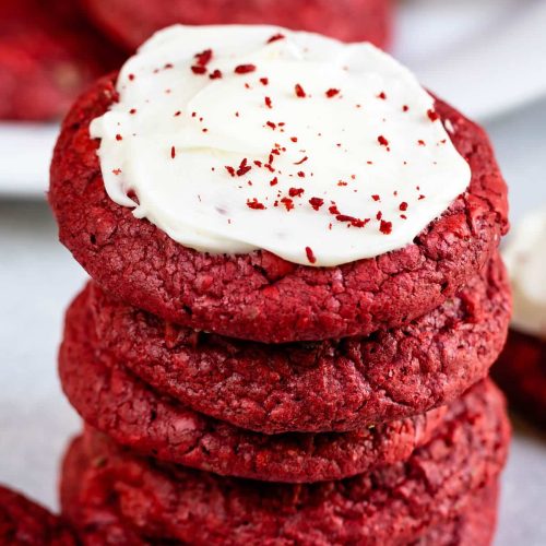These cookies are perfect as individual treats stocked in a jar or served on a plate alongside a cold glass of milk or a cup of hot coffee. If you’re sharing, stacking them makes the red velvet layers even more irresistible — and trust me, you won’t want to wait long before tasting!