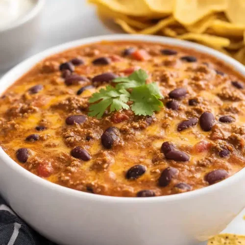 Chili isn’t something you slice, but you do portion generously into bowls. Ladle a hearty scoop and crown with your favorite toppings: shredded cheese, sour cream, avocado slices, fresh cilantro, a squeeze of lime, or a scattering of green onions. Serve with crusty bread, cornbread, or over a bed of rice. The first bite should deliver warmth, a touch of brightness from the glaze, and that comforting chili glow that says, “You’re home.”