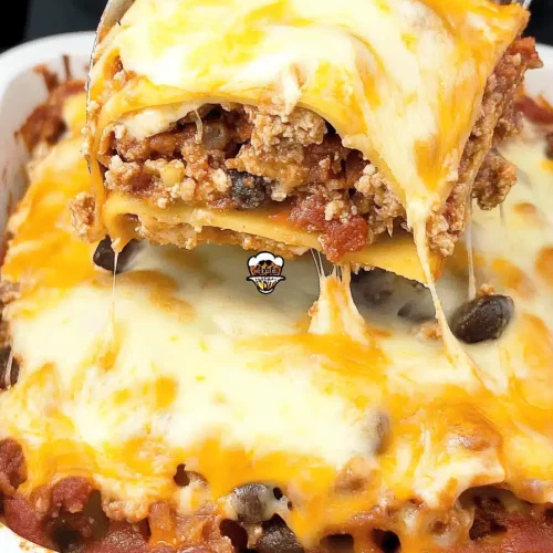 Think of taco lasagna as the best of two worlds crashing deliciously on your dinner plate. It’s essentially a layered casserole that takes the traditional Italian lasagna format—layers of hearty filling, sauce, and cheese—and swaps out the usual béchamel and marinara for taco-seasoned goodness. Ground beef or turkey seasoned with classic taco spices replaces the usual ragu, and instead of pasta sheets, you get tortillas layered throughout. Then it’s all topped off with mountains of melted cheese and your favorite taco toppings. The name is a bit playful, but it really captures the spirit of the dish: comforting, cheesy, and packed with those familiar Tex-Mex flavors. It’s not fancy, but it’s incredibly satisfying—and I promise, your friends and family will be asking for seconds before you can even say “¡Buen provecho!”