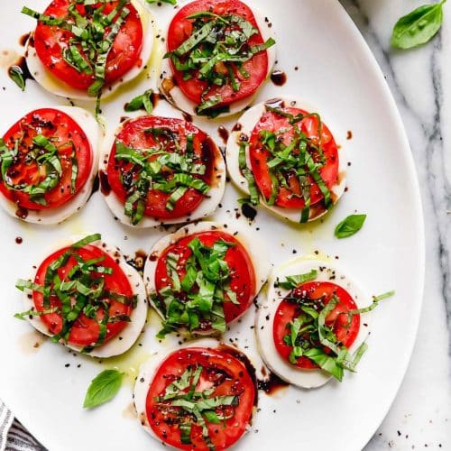Refrigerator Storage: If you’ve already dressed it, you’ll want to refrigerate promptly and consume within 1 day. If you’ve left the salad undressed, you can refrigerate the components (tomatoes, mozzarella, basil, and dressing) separately for up to 2 days, then assemble and dress right before serving.
