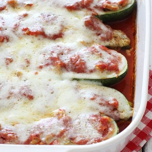 These delicious zucchini boats are stuffed with Italian chicken sausage, savory marinara sauce, and melted mozzarella cheese. A perfect low-carb dinner that's easy to prepare and packed with flavor.